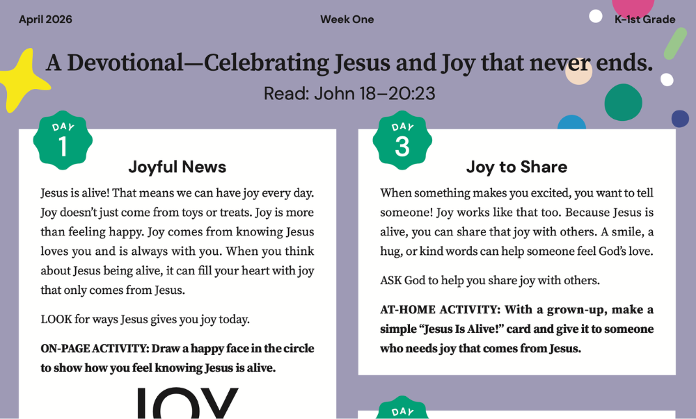 Jesus died on the cross to rescue us and was placed in a tomb. His friends were sad and thought all hope was gone. But on the third day, the tomb was empty. Jesus was alive. Because Jesus is alive, we can have joy no matter what is happening around us.