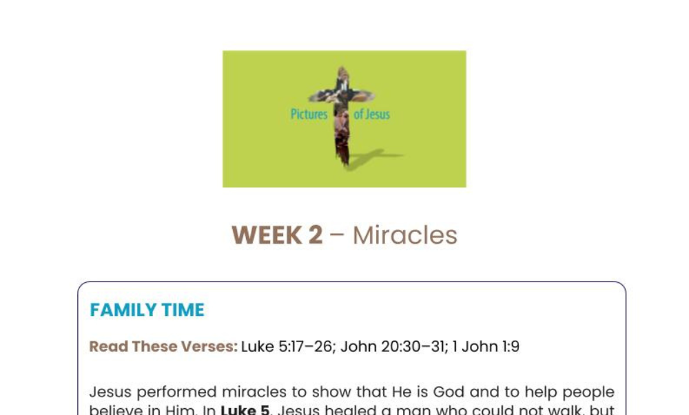 Jesus performed miracles that showed God’s power and love. These miracles were not tricks or illusions. They were real and changed people’s lives. More than healing bodies, Jesus showed that He has the power to forgive sins. This lesson reminds us that God accepts us, forgives us, and can bring real change to our lives.